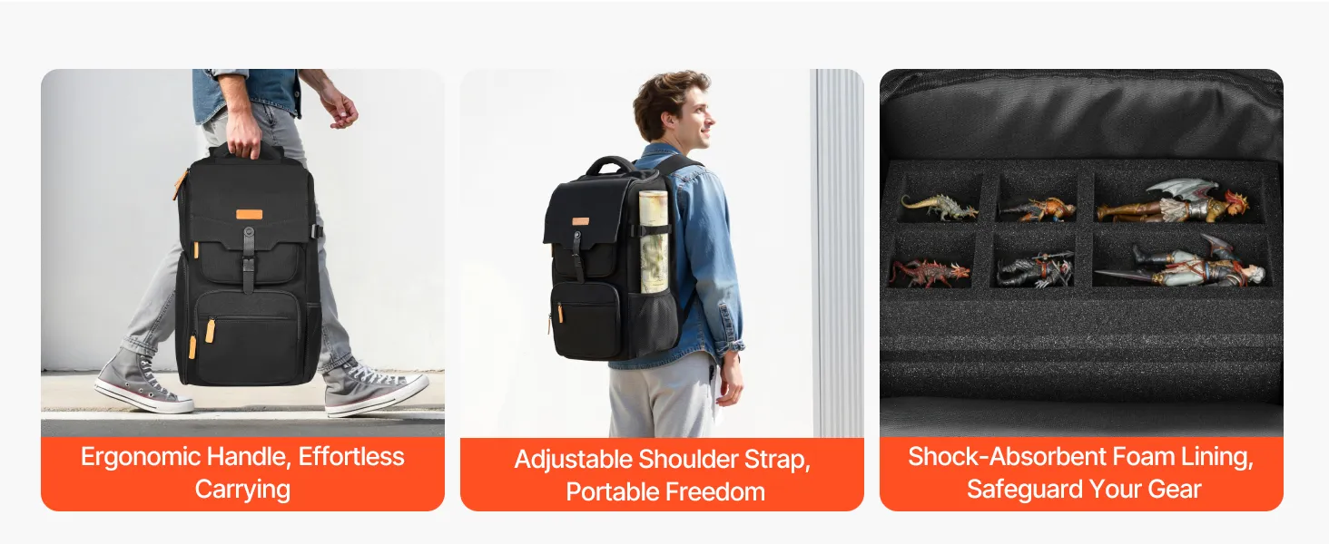 Diese Miniatur-Aufbewahrungstasche ist ideal für Sammler. Die leichte Perlwatte-Polsterung dämpft Stöße und schützt vor Druck, sodass Ihre Modelle sicher, ordentlich aufbewahrt werden. Mehrere Fächer bieten Platz für Spielmaterialien – Reisen, Conventions oder den täglichen Gebrauch.