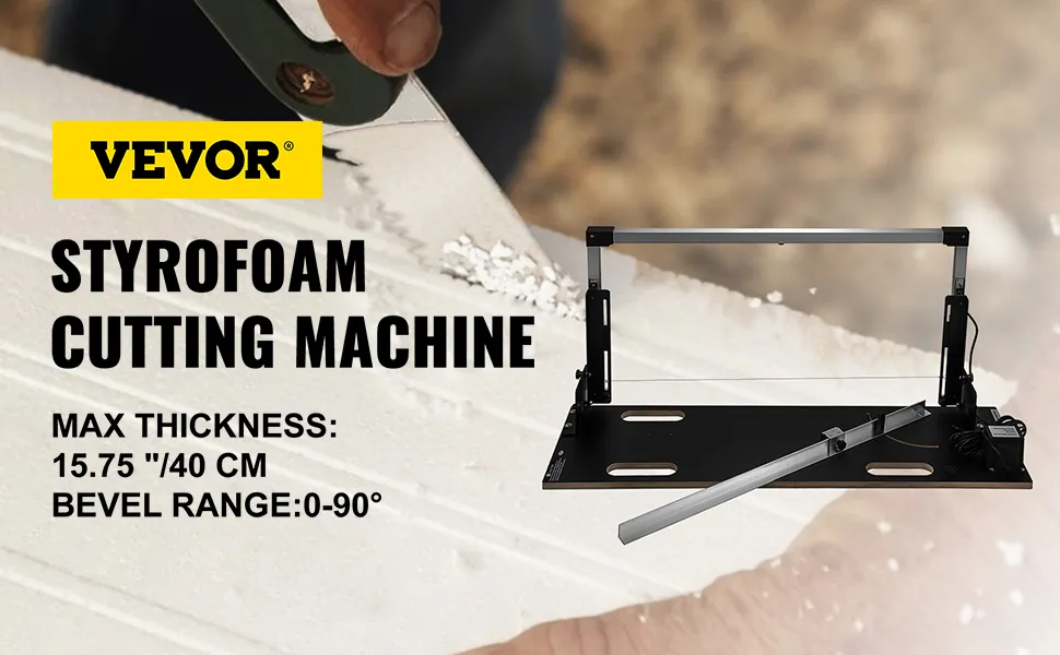 Der extra leichte Rahmen aus Aluminiumlegierung ist zum Tragen und Bedienen des Geräts tragbar. Der Stoppknopf ist bereits vorinstalliert, um die Schnitttiefe einzustellen, und ermöglicht so schnelle Wiederholungsschnitte bei einer ganzen Reihe von Hartschaumplatten.
