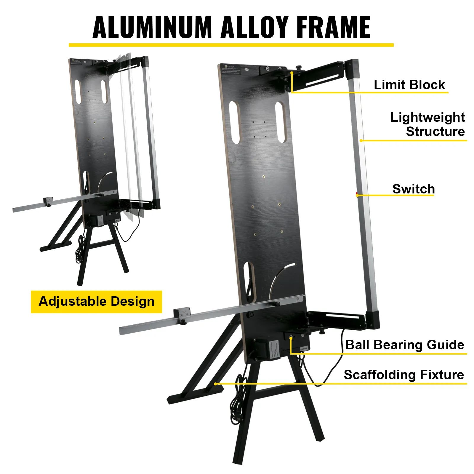 Der extra leichte Rahmen aus Aluminiumlegierung ist zum Tragen und Bedienen des Geräts tragbar. Der Stoppknopf ist bereits vorinstalliert, um die Schnitttiefe einzustellen, und ermöglicht so schnelle Wiederholungsschnitte bei einer ganzen Reihe von Hartschaumplatten.