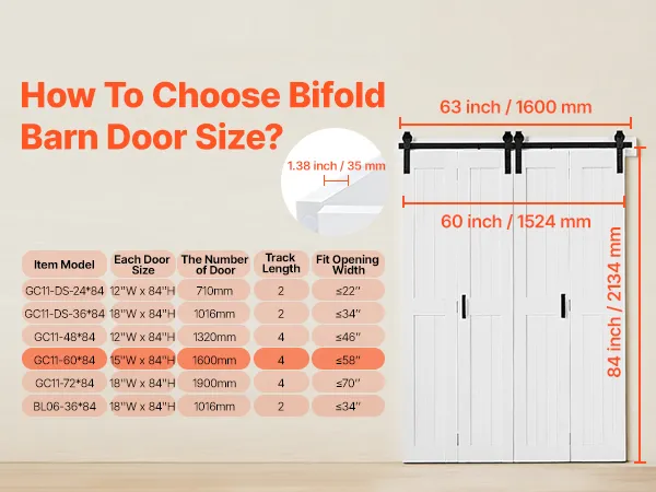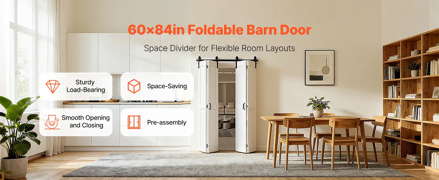 VEVOR Faltbare Schiebetür im Scheunentor-Stil 1524x2134 mm aus MDF, mit Beschlagsatz & Platzsparendem H-Rahmen-Design & Vormontierter Paneele, Faltschiebetür für Schlafzimmer Wohnzimmer Weiß