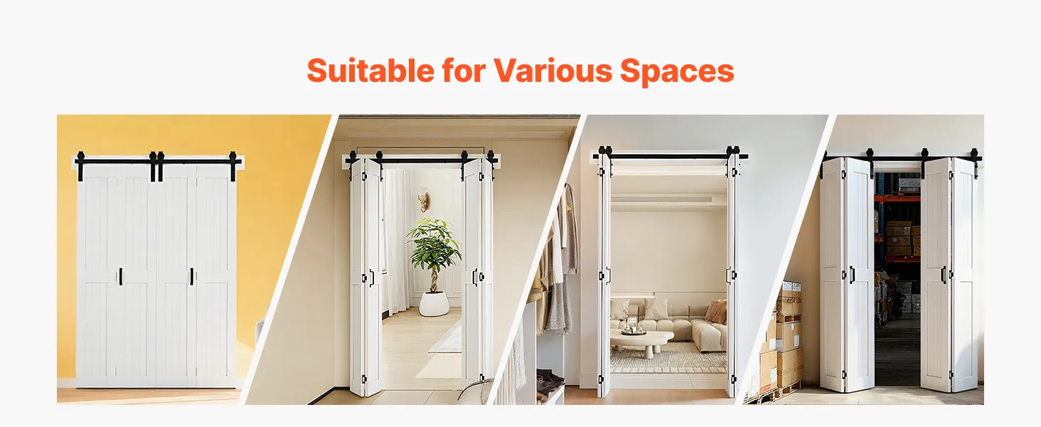 Unsere zweiflügelige Schiebetür im Scheunentor-Stil eignet sich hervorragend zur Unterteilung von Innenräumen wie Wohnzimmern, Balkonen, Badezimmern und Abstellräumen – besonders nützlich in kompakten Wohnungen oder Bereichen, die eine flexible Raumaufteilung erfordern.