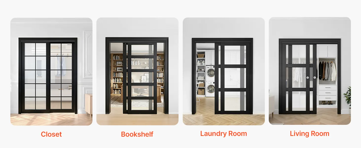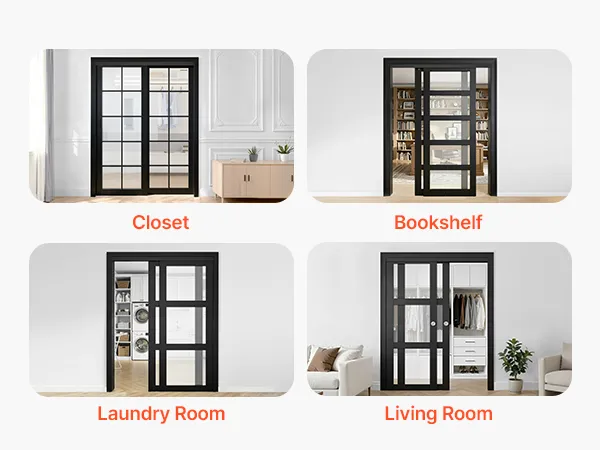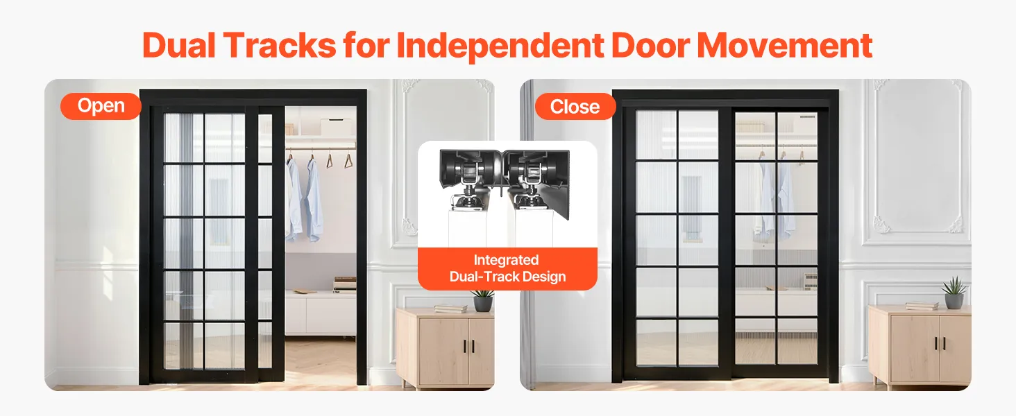 Dieses integrierte Türbeschlagset mit Doppelschienen wurde speziell für Schiebetüren an Kleiderschränken entwickelt und verbessert die Nutzbarkeit in beengten Räumen. Es ermöglicht ein sanfteres und natürlicheres Öffnen und Schließen und erleichtert so die tägliche Organisation und den Zugriff auf die Türen.