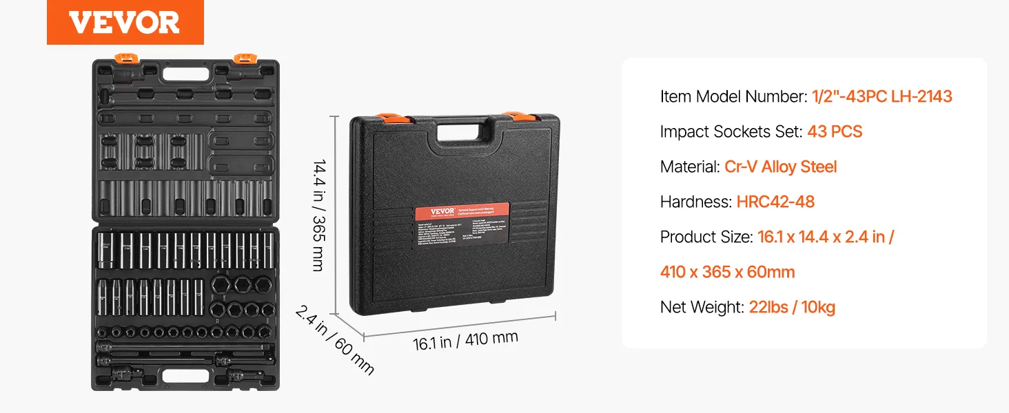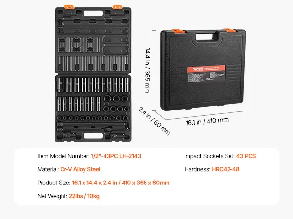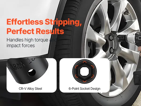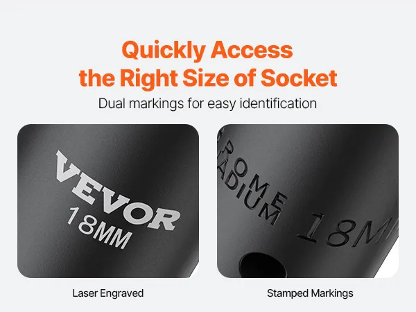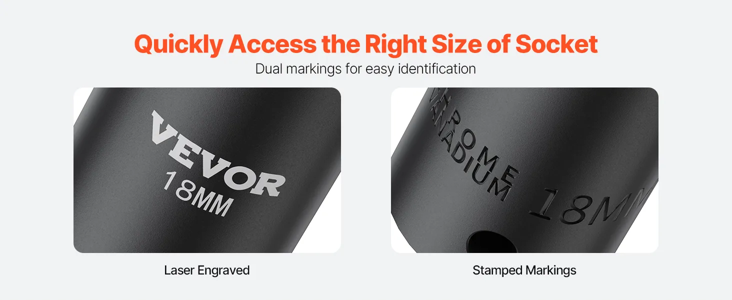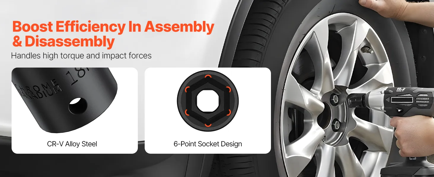 Superior performance: Whether you use an impact wrench or drive them by hand, these high-quality chrome vanadium sockets deliver superior performance. The impact socket set features a 6-point high-torque design that engages and grips the stronger flat sides of the nut or bolt head, not the weaker corners.