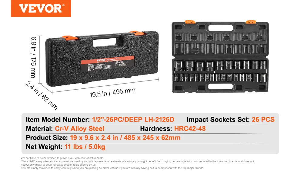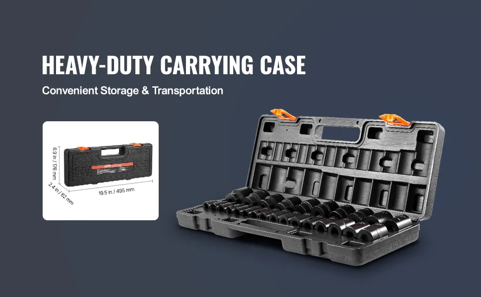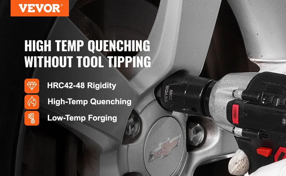 Der VEVOR-Schlagsteckschlüsselsatz besteht aus hochwertigem CR-MO. Dies sorgt für Haltbarkeit und verbesserte Leistung. Jedes Teil ist so konzipiert, dass es Verschleiß widersteht und so eine lange Nutzungsdauer gewährleistet. Dank des robusten Designs können diese Steckschlüssel auch schwierige Aufgaben problemlos bewältigen. Ganz gleich, um welche Aufgabe es sich handelt, Sie können sich auf die effiziente Leistung dieses Satzes verlassen. Dies macht ihn zur ersten Wahl sowohl für Hobbymechaniker als auch für professionelle Mechaniker. Das CR-MO-Material zeichnet sich durch seine Stärke aus. Es bietet außergewöhnliche Zähigkeit, selbst bei starker Beanspruchung.