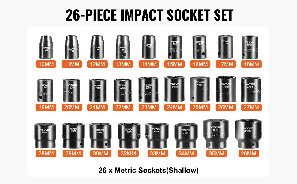 Dieser Schlagschrauber-Steckschlüsselsatz umfasst 26 verschiedene Größen. Das bietet eine außergewöhnliche Auswahl und Vielseitigkeit. Von kleinen bis zu großen Schrauben, dieser Satz deckt alles ab. So finden Sie leichter die richtige Größe für die jeweilige Arbeit. Jeder Steckschlüssel ist deutlich gekennzeichnet, sodass Sie weniger suchen müssen. Die große Auswahl macht diesen Satz vielseitig genug für verschiedene Anwendungen. Egal, ob Sie an Autos, Lastwagen oder schweren Maschinen arbeiten, Sie sind damit gut bedient. Dadurch werden mehrere Sätze überflüssig, was Platz und Aufwand spart.