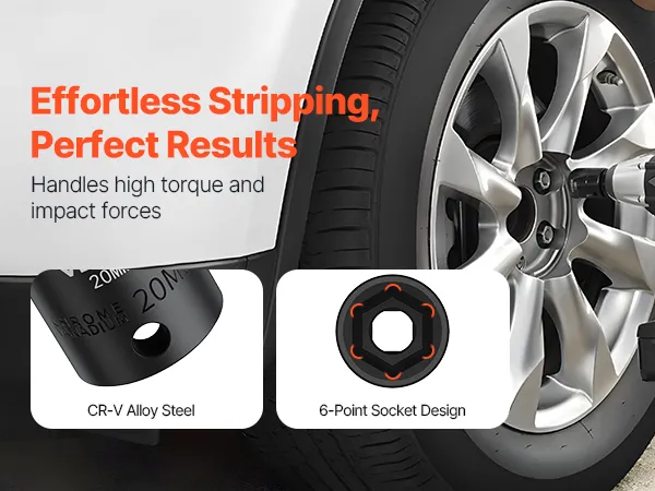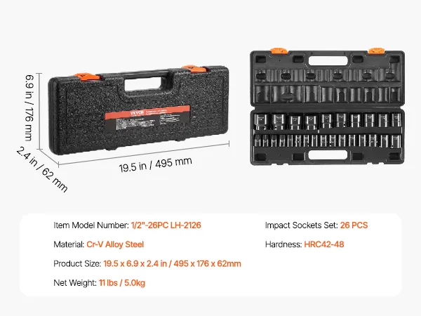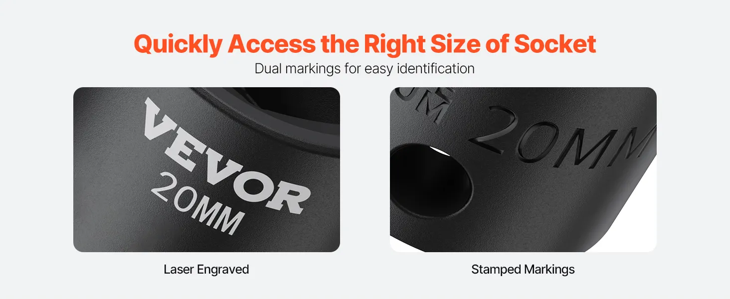 Superior performance: Whether you use an impact wrench or drive them by hand, these high-quality chrome vanadium sockets deliver superior performance. The impact socket set features a 6-point high-torque design that engages and grips the stronger flat sides of the nut or bolt head, not the weaker corners.