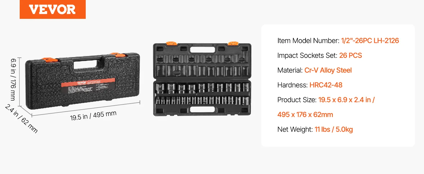 Compact & portable: The 1/2-inch impact socket set includes a sturdy storage case for organization and transport, making it a great set of sockets for mechanics.