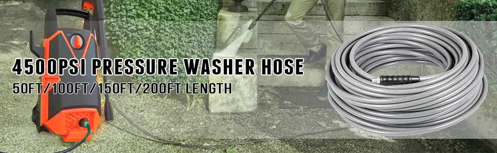 Dieser Lösungsschlauch ist für Hochdruckreiniger, der bis zu Max. 4500psi Druck halten kann. Auf diese Weise verlängert er seine Betriebszeit und schützt vor Explosionen.