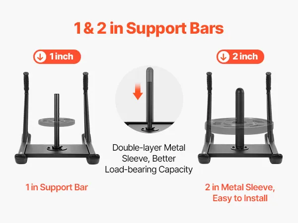 Passend für 25 & 51 mm Gewichtsplatten: Dieser Fitnessschlitten verfügt über 1 Zoll und 2 Zoll Stützstangen mit doppelten Metallhülsen für eine bessere Tragfähigkeit. Er funktioniert mit Standardplatten, mit einer 2-Zoll-Stange für eine einfache Rohrmontage ohne Neuinstallation