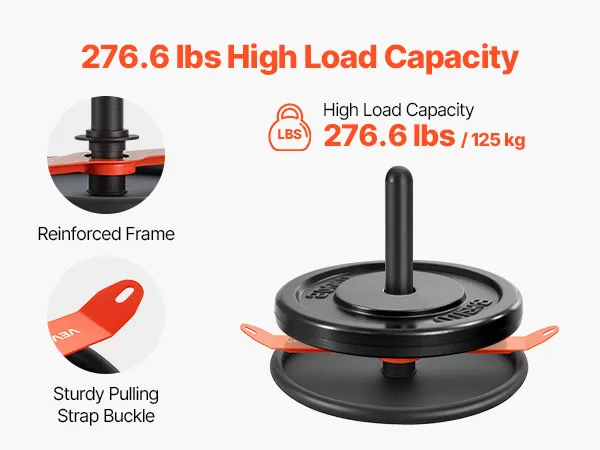 VEVOR Gewichtsschlitten Kraftschlitten Krafttrainingsschlitten zur Verbesserung der Geschwindigkeit bei sportlichen Übungen, Fitnessgerät mit Gurt, für 51 mm Gewichtsscheiben Orange & Schwarz