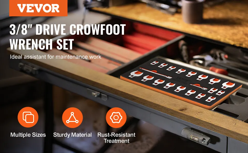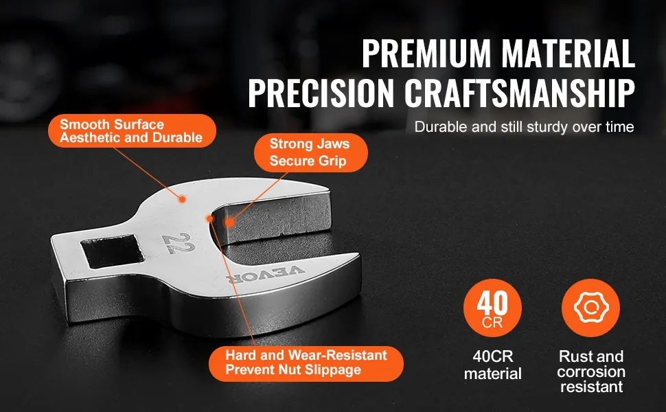 Der VEVOR 3/8-Zoll-Antriebsschlüssel mit Hahnenfuß ist auf einer soliden 40Cr-Stahlbasis aufgebaut. Dieses Material gewährleistet eine langfristige Nutzung und einen festen Halt der Muttern. Sie müssen sich keine Sorgen über ein Abrutschen oder eine nachlassende Leistung im Laufe der Zeit machen. Diese Schraubenschlüssel sind robust konstruiert, sodass sie auch harte Arbeiten bewältigen können, ohne zu brechen, was sie zu einer zuverlässigen Wahl für jede Arbeit macht.