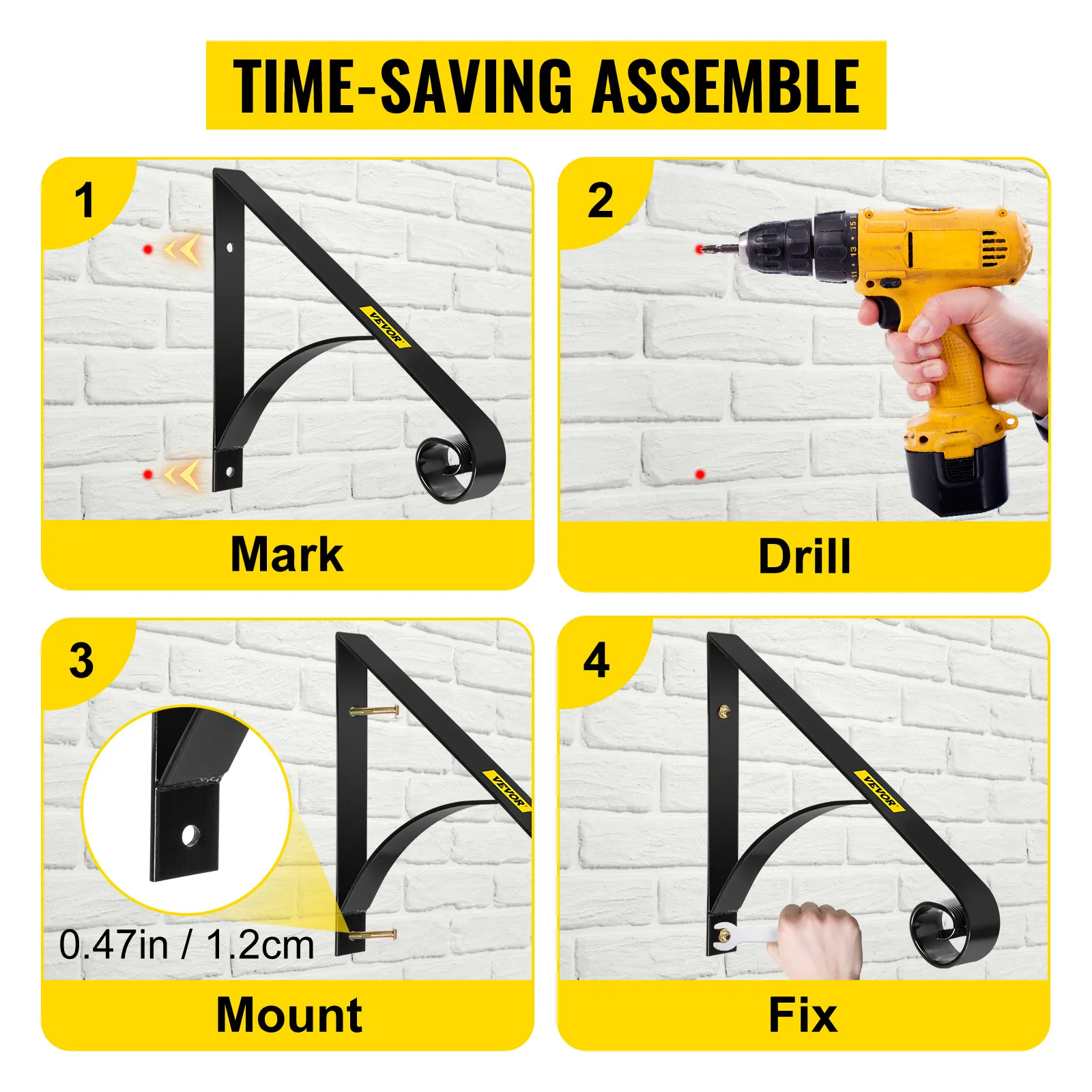 VEVOR-Logo mit dem Slogan „Robuste Ausrüstung & Werkzeuge, weniger zahlen“ in Schwarz und Gelb.