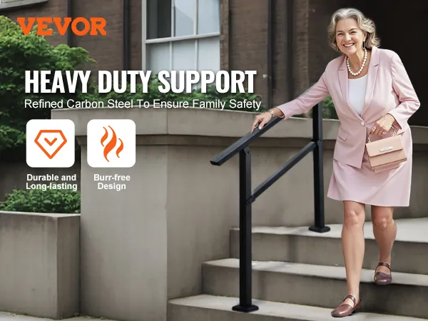 VEVOR Handlauf 103 cm, Treppengeländer-Set für 2–3 Stufen, schwarzes Vierkantrohr mit horizontaler Stange, Stützgeländer aus Karbonstahl für Senioren, Beton- & Decktreppen