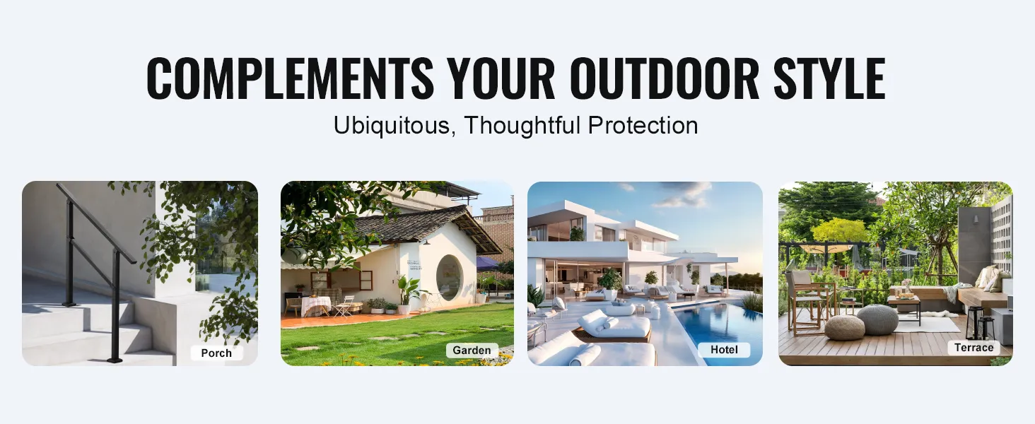 Vielseitig einsetzbar: Ideal für Außentreppen. Kann auf Beton, Holzböden, Fliesen, Marmor und anderen festen Materialien installiert werden. Dank seines einzigartigen Designs lässt es sich leicht auf verschiedenen Treppenarten installieren.