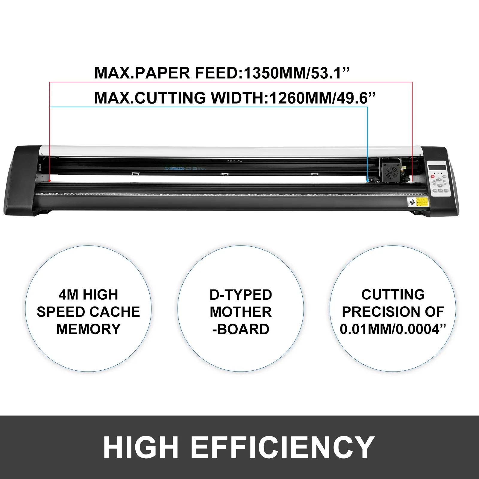 • 【SCHNEIDKAPAZITÄT】 - 53-Zoll-Vinyl Schneidmaschine mit einer maximalen Papierzufuhr von 1350 mm, einer maximalen Schnittbreite von 1260 mm, einer Schnittgenauigkeit von +/- 0,01 mm und einer Papierzufuhrgenauigkeit von 3 m.