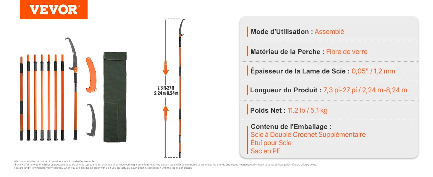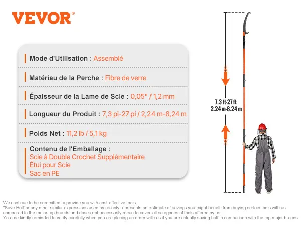 Die ausziehbare Astsäge von VEVOR wurde so konstruiert, dass Hausbesitzer Äste von hohen Bäumen abschneiden können, ohne große Risiken beim Aufstieg auf eine Leiter eingehen zu müssen. Diese Baumschere lässt sich von 2,3 bis 8,1 m ausziehen, was das Beschneiden hoher Bäume einfacher und sicherer macht.