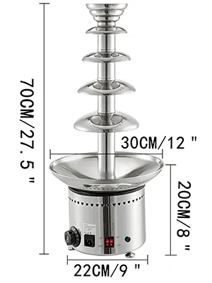 Die große Schokoladenbrunnenmaschine ist dank ihrer Edelstahlkonstruktion 304 für den Langzeitgebrauch ausgelegt. Es kann schnell Schokolade schmelzen und einen schönen Brunnen bilden.
