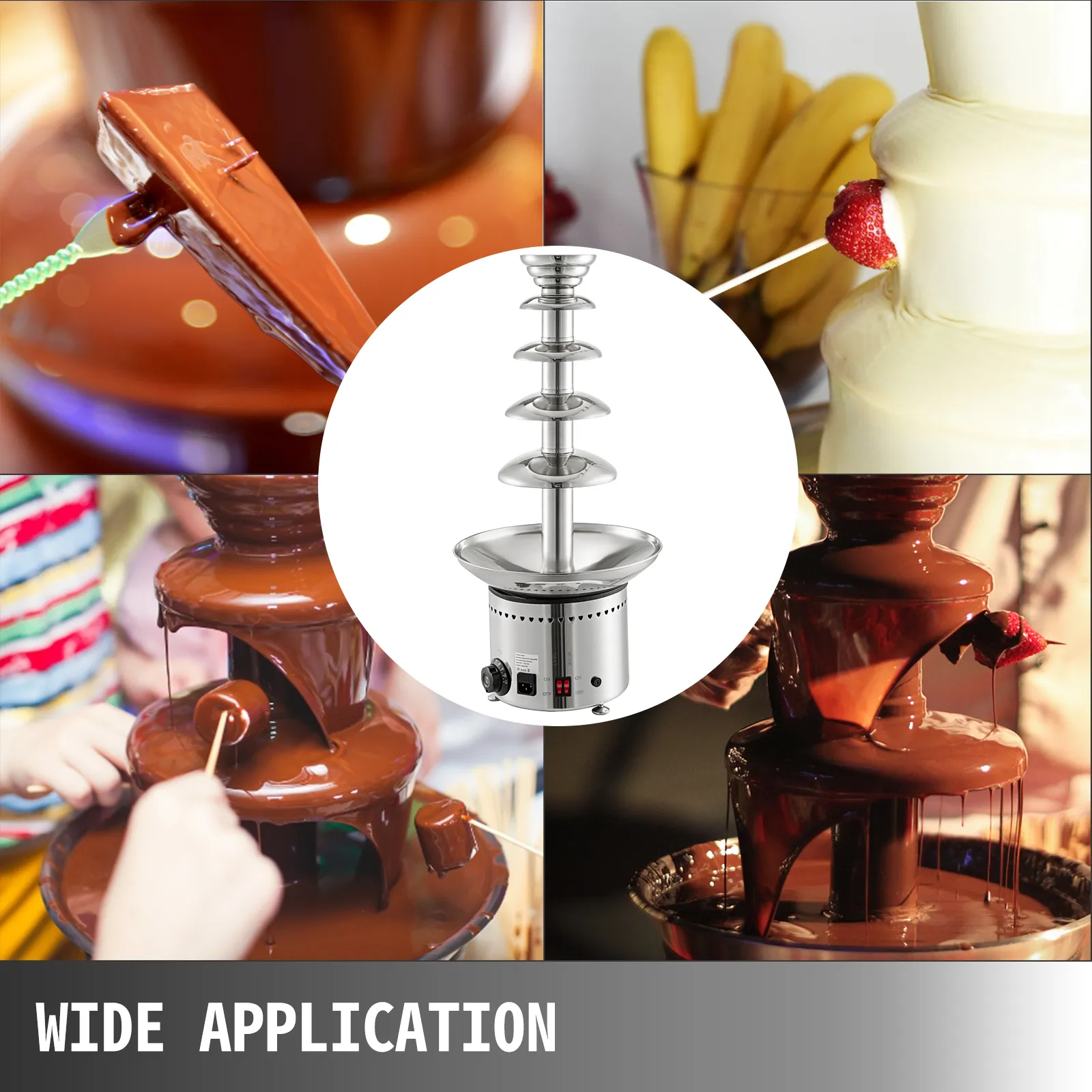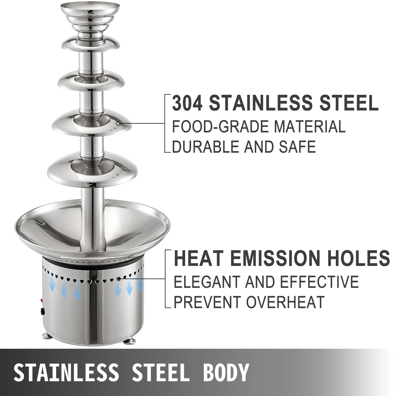 Dieser fünfstufige Springbrunnen hat ein Fassungsvermögen von 5 kg Die vollständige Schleifdichtung löst das Problem des Sirupaustritts und sorgt für einen gleichmäßigen Schokoladenfluss.