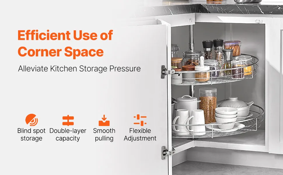 Großes Fassungsvermögen: Der doppelschichtige Küchenschrank mit Eckregal bietet mit einem Durchmesser von bis zu 31 Zoll (78,74 cm) ein extragroßes Fassungsvermögen für Schüsseln, Teller, Gewürze und Gläser.