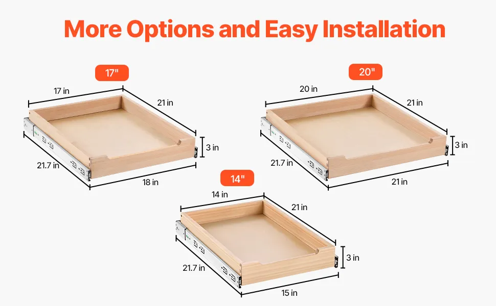 Kompatibilität prüfen: Die Maße der einzelnen Schublade betragen: 14 x 21 x 3 Zoll (356 x 533 x 76 mm), mit einer inneren Schubladenhöhe von 2,2 Zoll (55 mm). Trotz ihrer kompakten Größe bietet die robuste Schiebeschublade reichlich Stauraum. Es sind mehrere Größenoptionen verfügbar, damit Sie Ihre Schränke effizient aufräumen und Ihr Leben einfacher machen können.