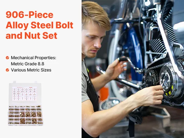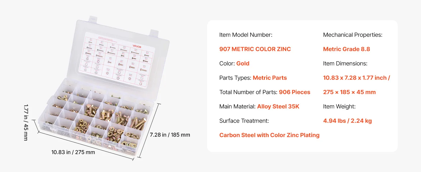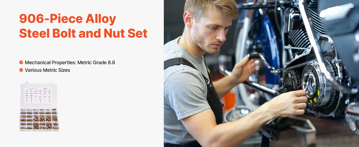 906-teiliges Set mit verschiedenen Spezifikationen: Dieses praktische Schrauben-, Muttern- und Unterlegscheiben-Set enthält 906 metrische Schrauben, Muttern und Unterlegscheiben in den Größen M4, M5, M6 und M8 in verschiedenen Längen. Ideal für allgemeine Reparaturen und Austausch