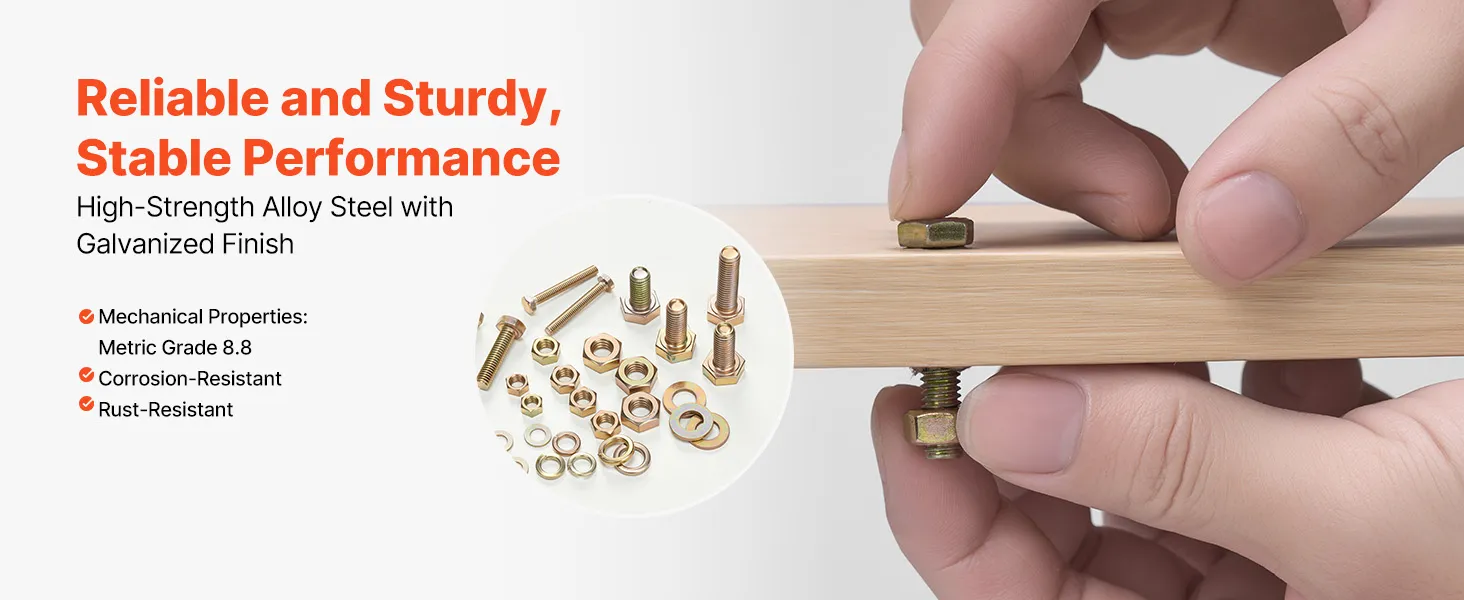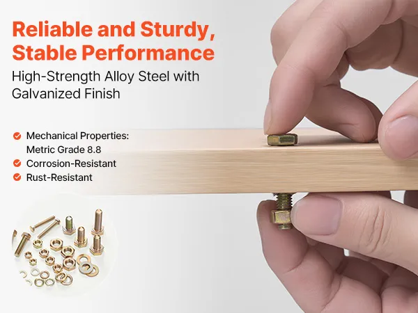 Robustes legiertes Stahlmaterial: Hergestellt aus hochwertigem legiertem Stahl für lange Haltbarkeit und Stabilität. Die verzinkte Oberfläche verbessert die Korrosionsbeständigkeit und stellt sicher, dass die Schrauben und Muttern rostfrei bleiben und unter verschiedenen Bedingungen einwandfrei funktionieren