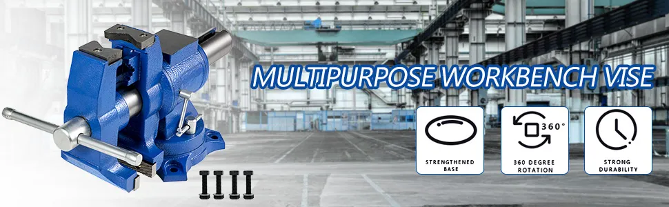 • 【360 GRAD DREHUNG】 - Der Kopf des Schraubstocks kann für zusätzliche Vielseitigkeit um 360 Grad gedreht werden, und die drehbare Basis des Schraubstocks ermöglicht eine optimale Arbeitsposition und Flexibilität.
