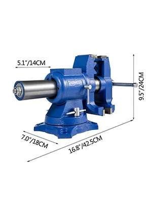 Die Basis des Schraubstocks kann auch um 360 Grad gedreht werden, was eine optimale Arbeitsablage ermöglicht. Mit Befestigungslöchern und Stiften kann ein stabiler Betrieb erreicht werden.