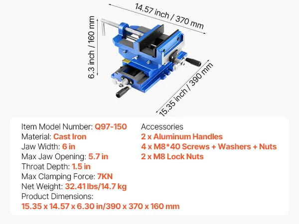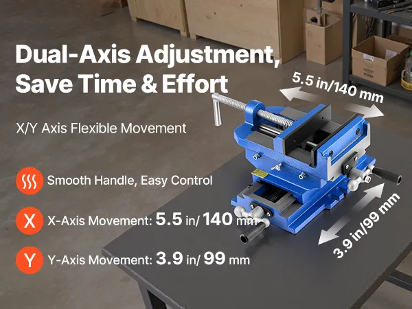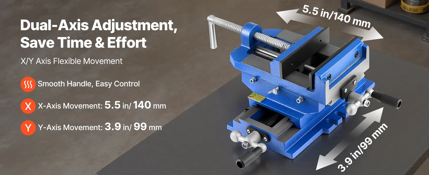 Der Kreuzschlittenschraubstock verfügt über eine Kreuzschlittenstruktur mit glatten Griffen, die eine präzise Vorwärts-/Rückwärts- und Links-/Rechtsbewegung ermöglichen. Jeder Griff ist unabhängig und ermöglicht eine präzise Positionierung, insbesondere für die Feinteilbearbeitung und Detailarbeiten.