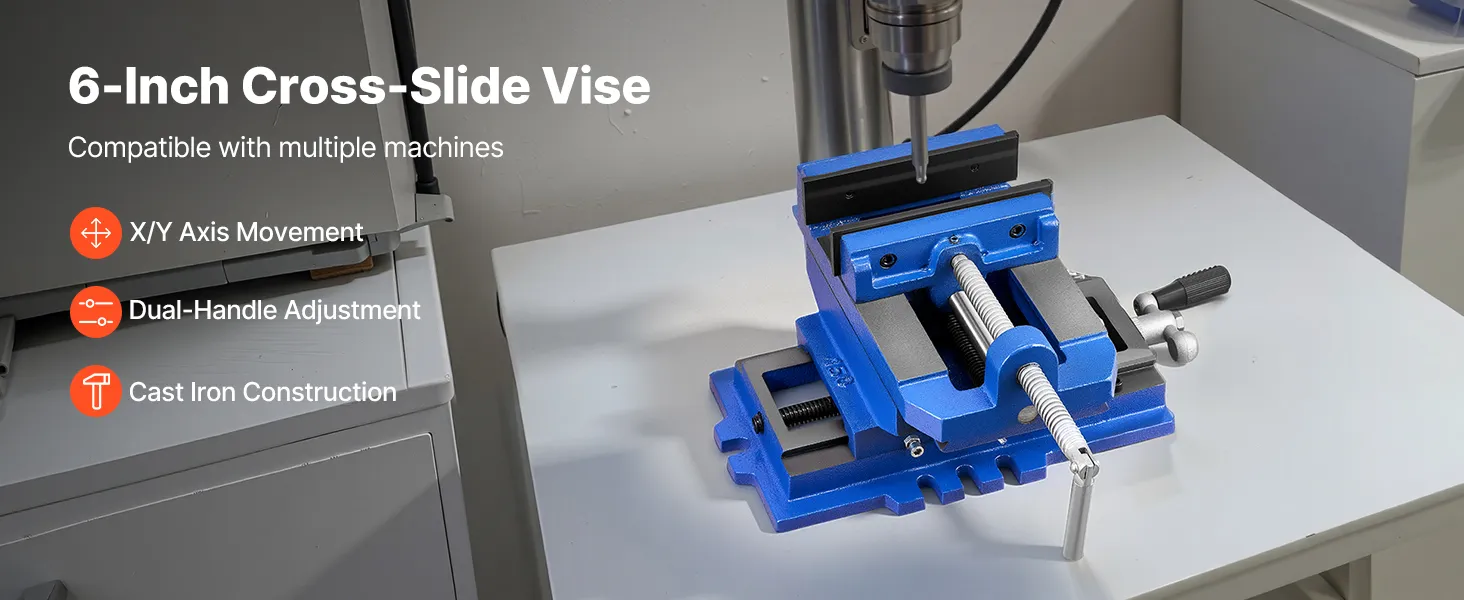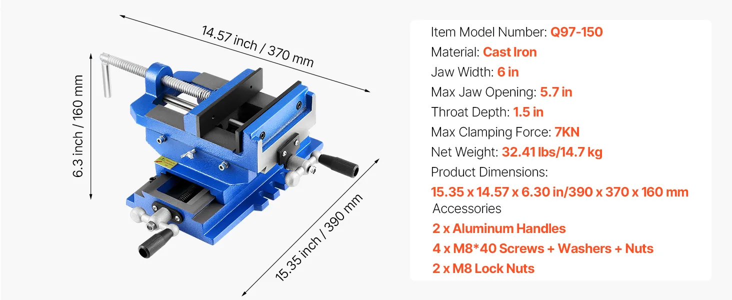 VEVOR Maschinenschraubstock, 15,24 cm Backenbreite, 2-Wege-XY-Achsen-Kreuzschraubstock, 14,478 cm Backenöffnung, Werkbank-Schraubstockklemme, für Holzbearbeitungs-Bohr-CNC-Fräsmaschine
