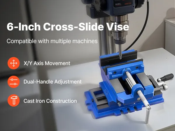 Dieser Kreuzschlitten-Bohrmaschinenschraubstock aus hochfestem Gusseisen ermöglicht präzise X/Y-Zweiachsen-Verstellungen. Seine Doppelgriffe ermöglichen eine gleichmäßige horizontale und vertikale Bewegung. Ideal für Fräsmaschinen, Bohrmaschinen und mehr.