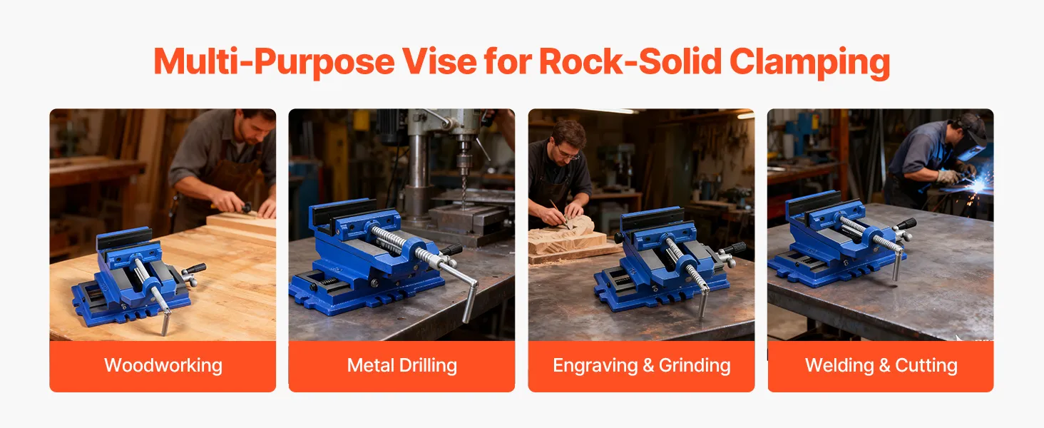 Breite Kompatibilität: Dieser Schraubstock ist ideal für Fräsmaschinen, Bohrmaschinen, Formmaschinen und Flächenschleifmaschinen. Mit seiner starken Vielseitigkeit erfüllt er vielfältige Verarbeitungsanforderungen und dient Ihnen als zuverlässiger Assistent