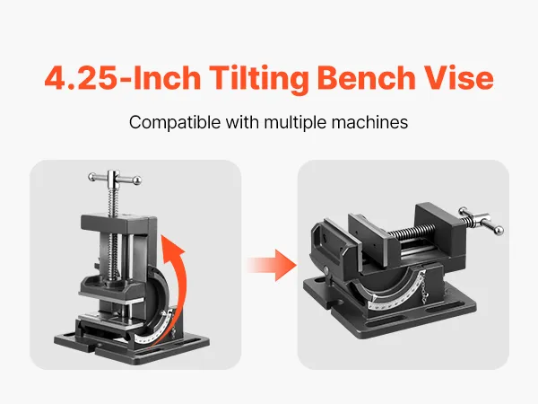 Dieser kippbare Bohrmaschinenschraubstock ermöglicht eine präzise Winkeleinstellung von 0° bis 90° und erfüllt Ihre Anforderungen für die Bearbeitung mehrerer Winkel.