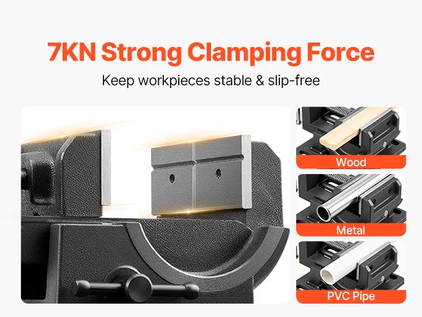 Langlebige Konstruktion: Dieser kippbarer Präzisions-Maschinenschraubstock aus hochwertigem Gusseisen mit hoher Härte ist schlagfest und langlebig. Seine solide Struktur trägt dazu bei, dass er auch bei hoher Beanspruchung über lange Zeit standhält.