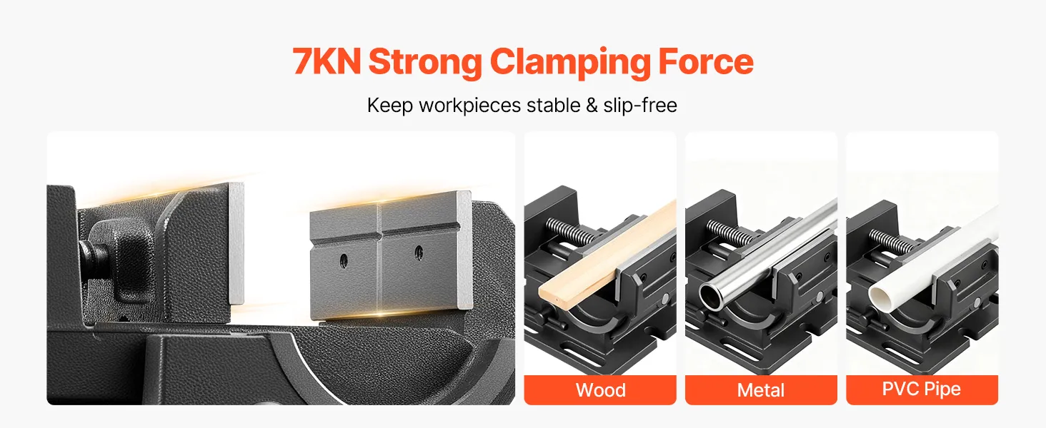Rutschfest und stabil: Dieser kippbarer Schraubstock mit rutschfesten, strukturierten Backen bietet eine Spannkraft von bis zu 7 kN, um Werkstücke sicher zu halten. Er verhindert effektiv ein Verrutschen und gewährleistet so eine stabile Leistung beim Bohren, Gravieren, Schleifen und mehr.