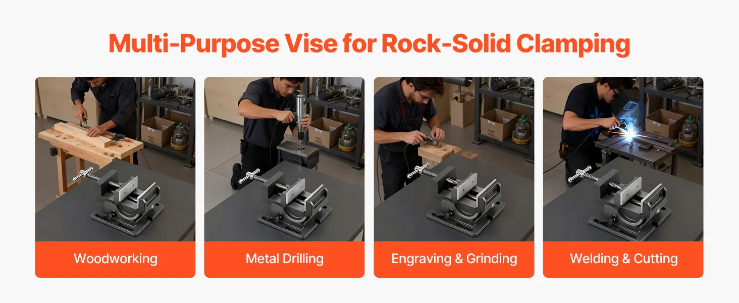 Breite Kompatibilität: Dieser Bohrmaschinenschraubstock aus Gusseisen ist ideal für Fräsmaschinen, Bohrmaschinen, Formmaschinen und Flächenschleifmaschinen. Dank seiner Vielseitigkeit erfüllt er vielfältige Verarbeitungsanforderungen und dient Ihnen als zuverlässiger Assistent