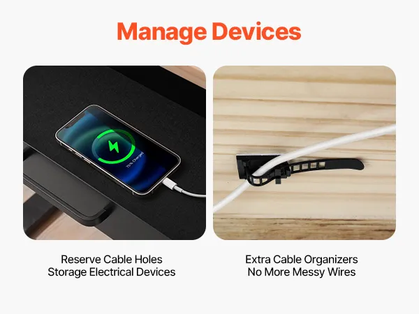 Einfacher Geräteanschluss: Der versteckte Schreibtisch-Organizer verfügt über Kabelöffnungen auf der Rückseite, ideal für die Aufbewahrung von Geräten, die Strom benötigen. Halten Sie Ihren Schreibtisch aufgeräumt, indem Sie Geräte hineinlegen und Kabel durch die Öffnung führen. Außerdem helfen zwei Kabelorganisatoren dabei, Kabel unter dem Schreibtisch zu sichern, sodass Ihr Arbeitsplatz aufgeräumt und organisiert bleibt.