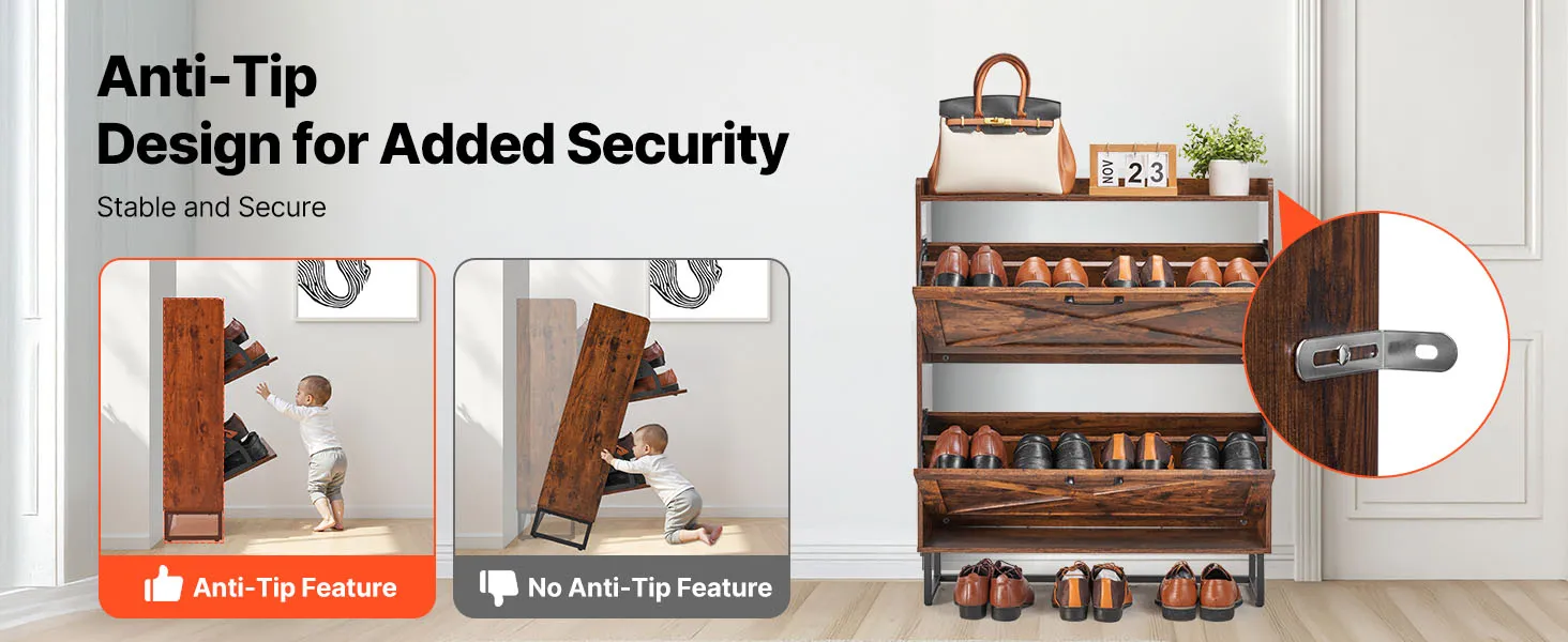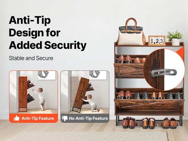 Ausgestattet mit einer Kippschutzvorrichtung, um den Schuhschrank sicher an der Wand zu befestigen, ein versehentliches Umkippen zu vermeiden und die Stabilität zu erhöhen.