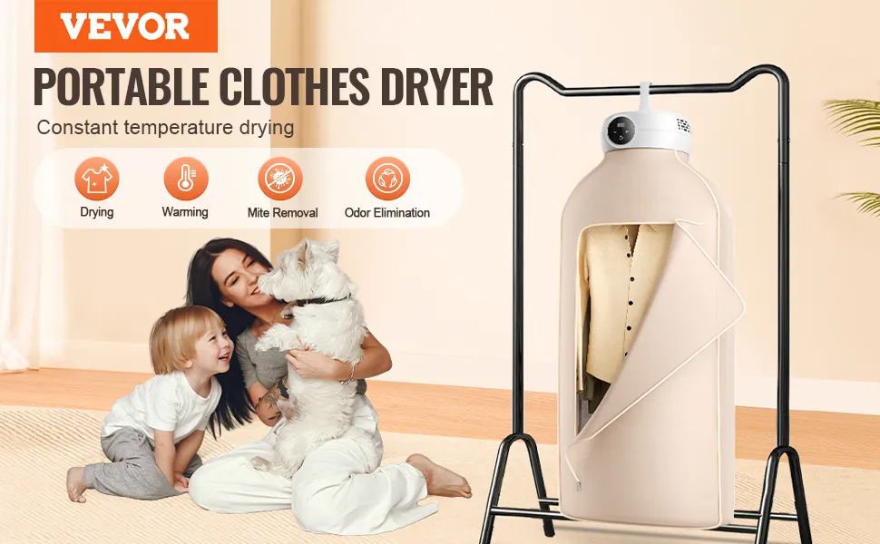 Effizientes Heizsystem: Dieser tragbare Wäschetrockner verwendet ein effizientes PTC-Wärmeleitelement und ein Konvektionstrocknungssystem an der Oberseite, um die heiße Luft in alle Richtungen zu verteilen. Dadurch wird sichergestellt, dass die Hochtemperaturwärme schnell in jeden Winkel der Kleidung eindringt, lästige Feuchtigkeit beseitigt und die Kleidung trocken und sauber hält.