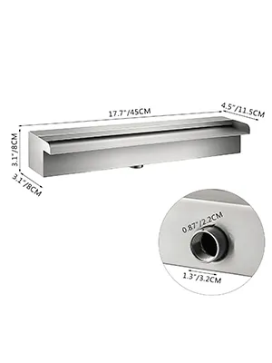 Der Überlauf verleiht Ihrem Außenbereich ästhetischen Reiz. Er verfügt über einen breiten, abgeschrägten Wasserauslass, der einen erstaunlichen Wasserfalleffekt erzeugt. Der Wasserfluss ist gleichmäßig und seidig. Er erzeugt beruhigende Melodien, die Ihren Geist beruhigen. Das elegante Design des Wasserfalls unterstreicht die Schönheit Ihres Gartens oder Pools und macht ihn sowohl optisch ansprechend als auch entspannend. Dieser Wasserfalleffekt ist sowohl optisch ansprechend als auch entspannend, da er für jede Außenumgebung eine Atmosphäre schafft. Akustische Attraktivität wird mit Funktionalität kombiniert, was ihn zu einer unglaublich wertvollen Ergänzung Ihres Außenbereichs macht.