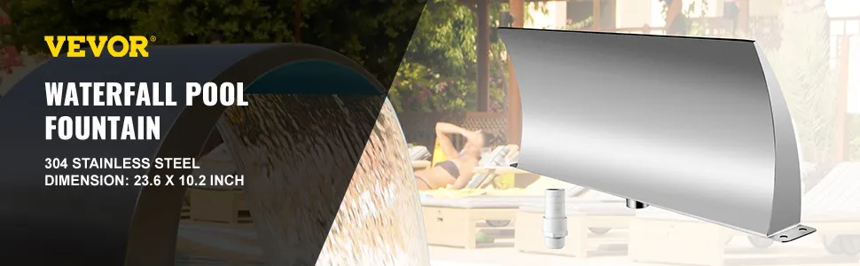 Dieser Pool-Brunnen aus Edelstahl 304 ist eine dekorative Ergänzung für Ihren Teich oder Pool und ermöglicht es Ihnen, die entspannenden Geräusche des Wasserspiels für ein Gefühl der Ruhe und des Wohlbefindens zu genießen. Dieser Pool-Wasserfallbrunnen bringt Ihnen ein schönes und stilvolles Aussehen und den beruhigenden Klang und Anblick des fallenden Wassers.