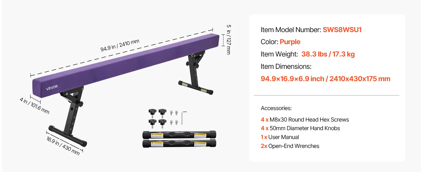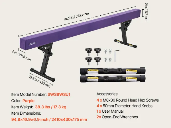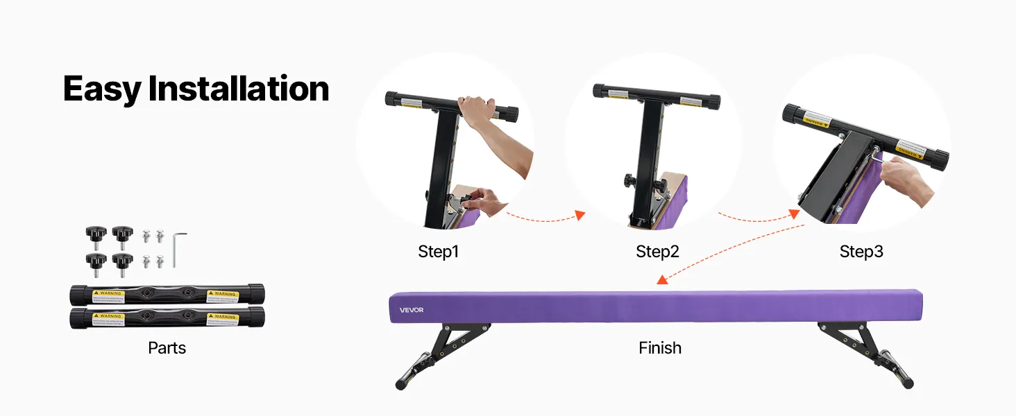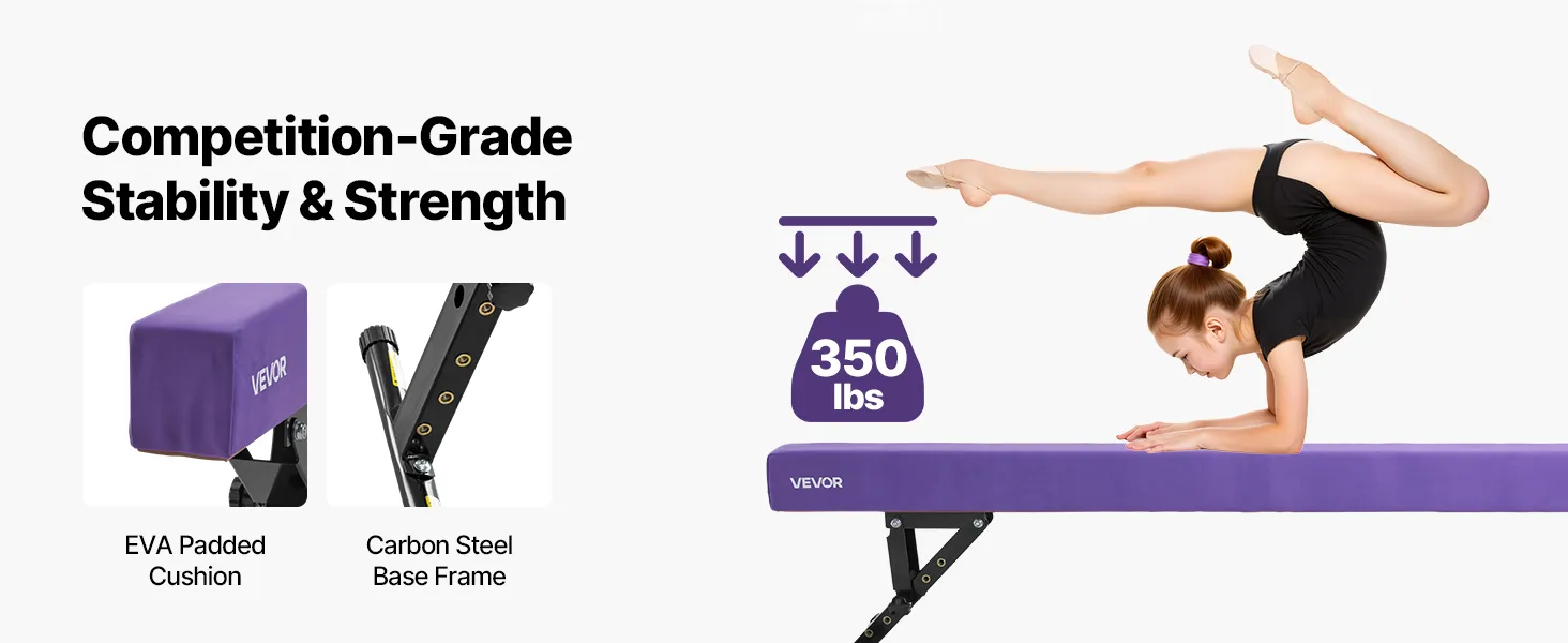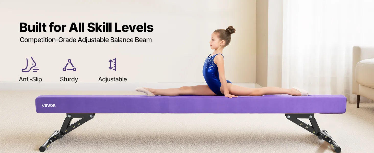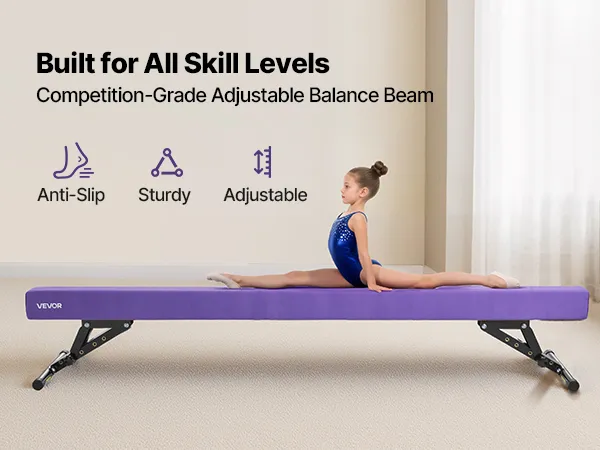 VEVOR Schwebebalken Gymnastik Kinder 241 cm Höhenverstellbar (5-stufig/170/380470/540/565mm), 158,7 kg belastbarer Gymnastikbalken Turnbalken, Balance Balken Balancierbalken für Fitnessstudio, Lila