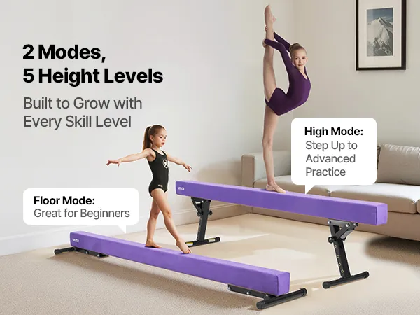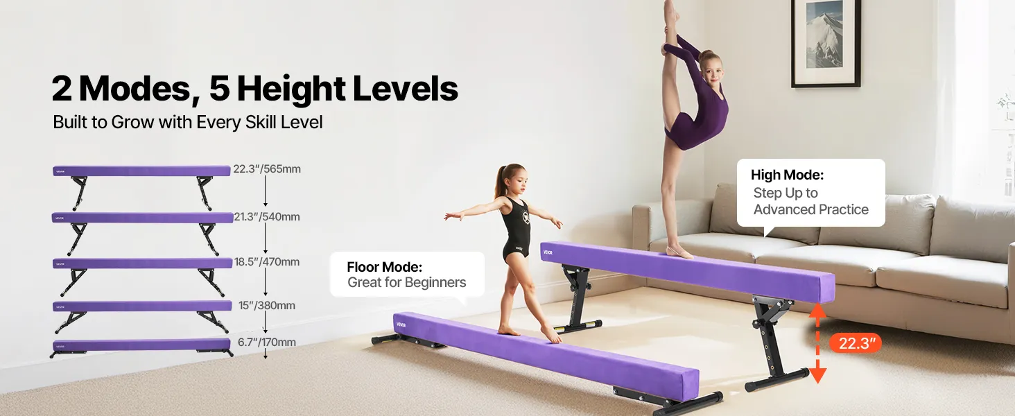5 Höhenstufen & 2 Modi: Dieser 94,9 Zoll (214 cm) lange, verstellbare Schwebebalken verfügt über zwei Trainingsmodi: einen Bodenmodus für Anfänger und einen erhöhten Modus für Fortgeschrittene. Die Höhe kann von 6,7 bis 15 / 18,5 / 21,3 / 22,3 Zoll eingestellt werden