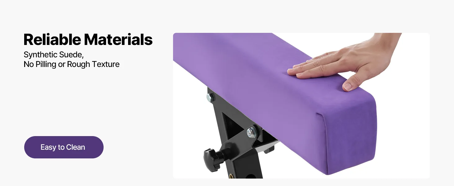 Wettkampftaugliches Gefühl: Der Gymnastikbalken ist mit abgerundeten Kanten und strapazierfähigem Kunstleder überzogen und bietet eine weiche, rutschfeste Oberfläche mit genau dem richtigen Halt und der richtigen Reibung. Bequem und zuverlässig für Kinder, die ohne Ausrutschen trainieren möchten