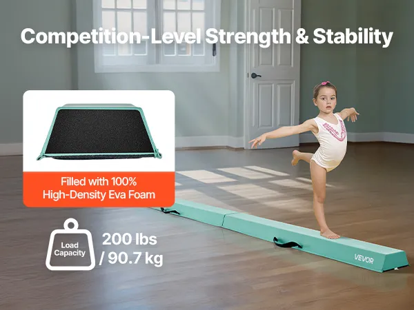 Professionelle Schwebebalkenmatte: Hergestellt aus 100 % hochdichtem EVA mit einer maximalen Belastung von 200 lbs (90,7 kg) bietet sie stabile Landungen und Dämpfung zur Reduzierung der Gelenkbelastung. Ideal zum Üben von Gehen, Drehungen und Gleichgewichtsbewegungen, um Koordination, Kraft und Kontrolle aufzubauen.