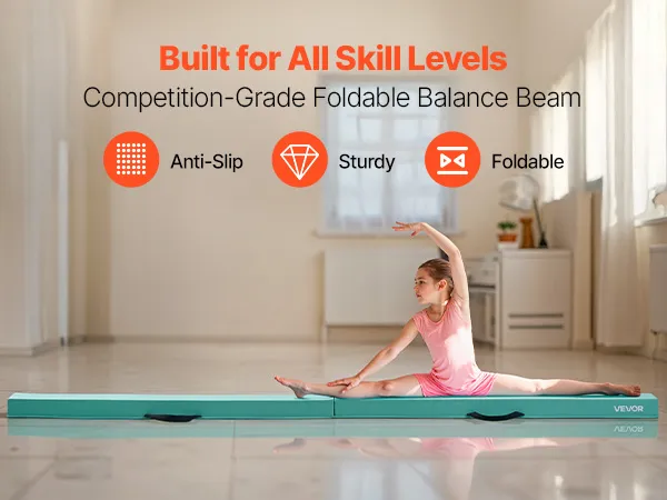 Ideale Länge: Dieser extra lange, faltbare Schwebebalken misst 92,5 Zoll (235 cm) und ist ideal für Kinder jeden Alters. Die 4 Zoll hohe Oberseite entspricht Wettkampfbalken, während die 6 Zoll hohe Basis einen stabilen Halt bietet und so ein Umkippen verhindert und Sicherheit beim Training gewährleistet.