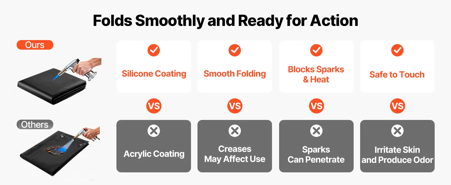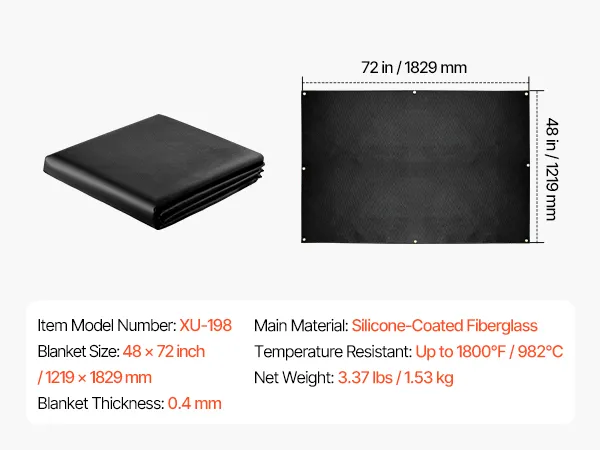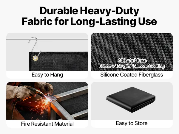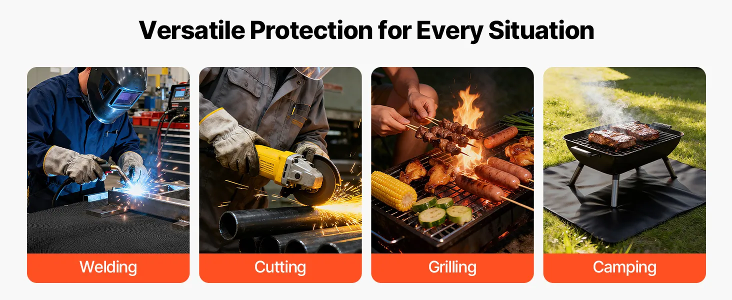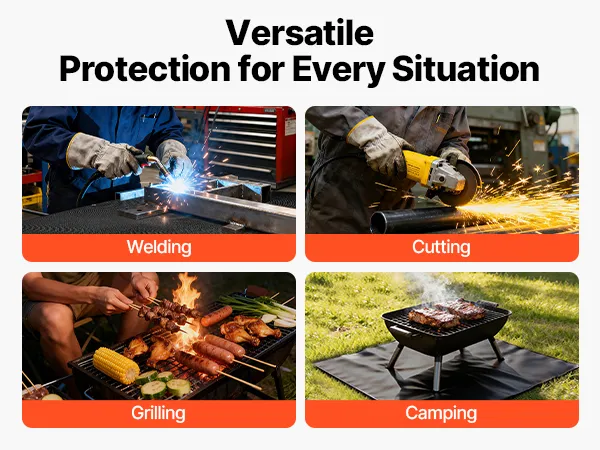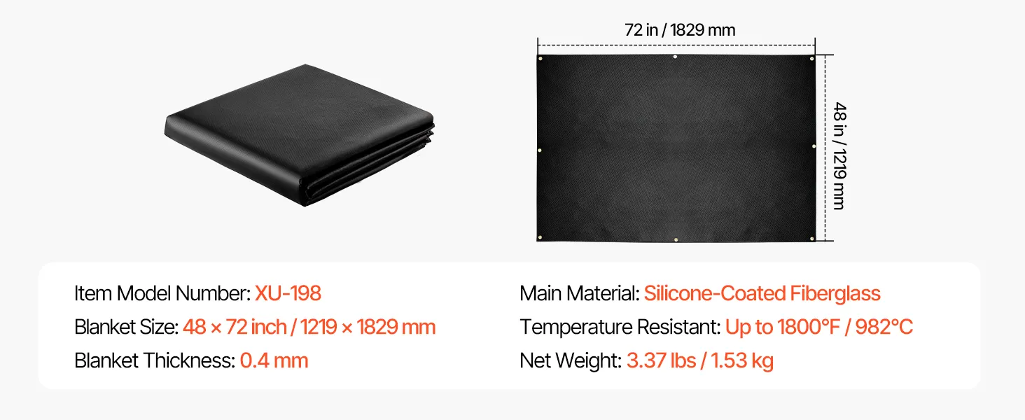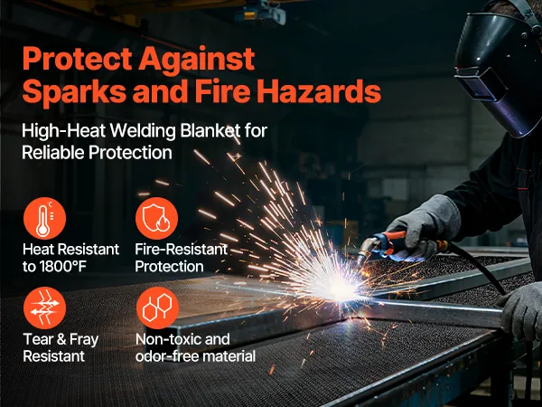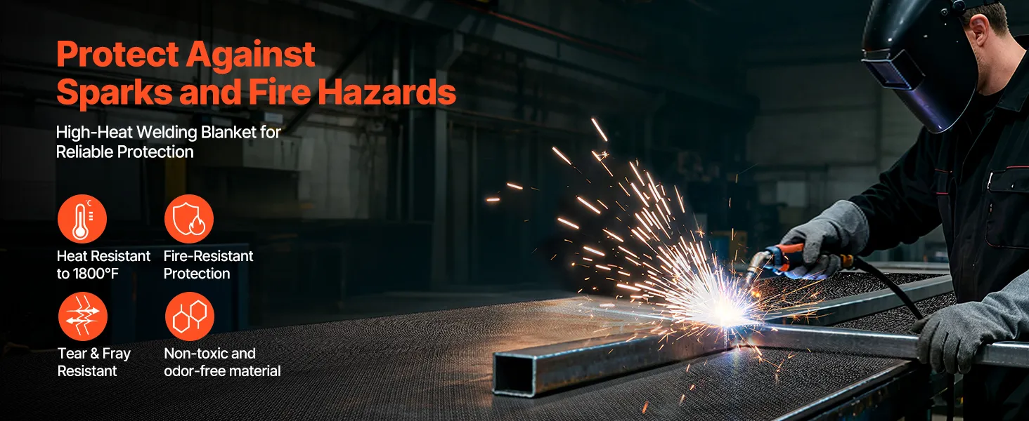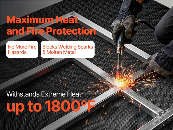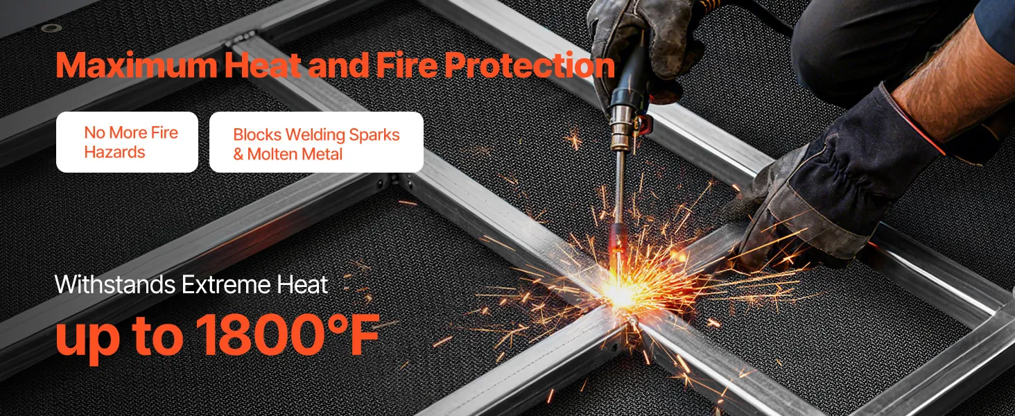 Hochtemperaturbeständig: Die 1219 x 1829 mm große Schweißdecke von VEVOR hält hohen Temperaturen bis zu 1800 °F (982 °C) stand und bietet eine hervorragende Hitze- und Flammenbeständigkeit zum Schutz vor Funken, Flammen, geschmolzenem Metall und intensiver Hitze.
