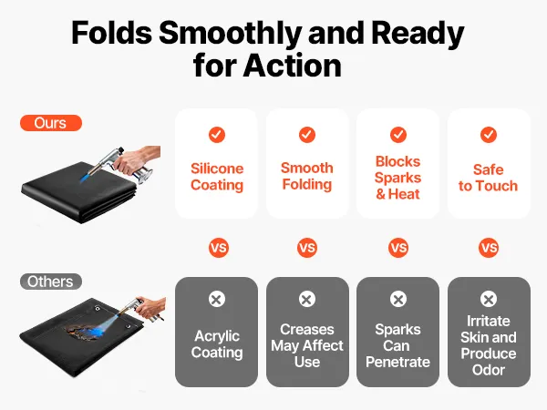 Die silikonbeschichtete Glasfaser-Schweißdecke von VEVOR hält Temperaturen bis zu 982 °C stand und bietet hervorragende Flammbeständigkeit. Sie schützt vor Schweißfunken und Schmelzspritzern. Schützen Sie sich vor Brandgefahren und genießen Sie ein sichereres und effizienteres Arbeitserlebnis.