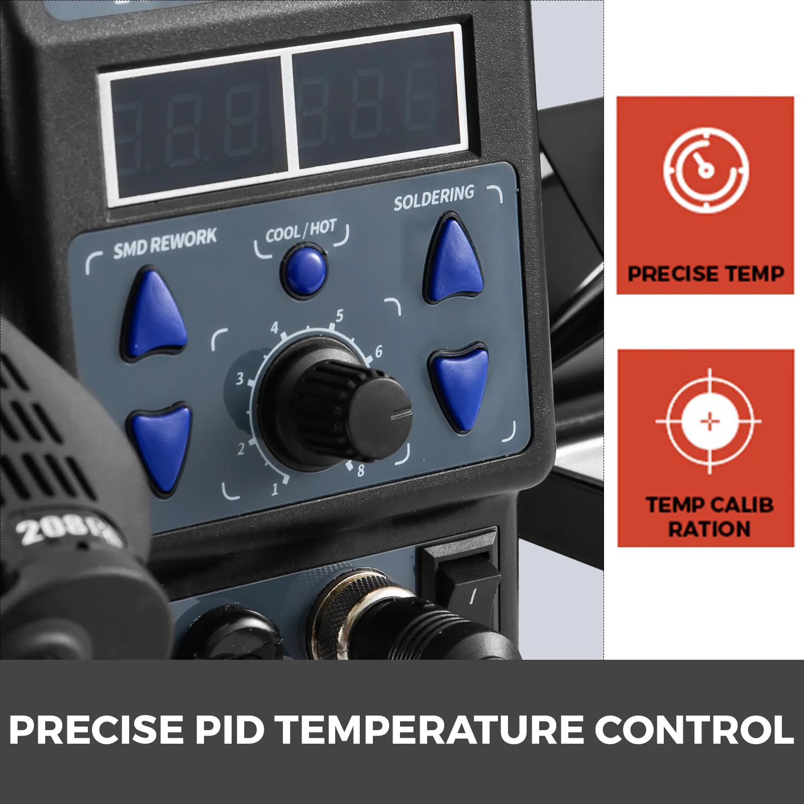 • 【PRÄZISE TEMPERATURREGELUNG】- Sensor mit geschlossenem Zyklus. Mikrocomputer-PID-Regelung. Alle 200ms die Windtemperatur zu verfolgen. Diese Funktionen ermöglichen eine präzise Temperaturregelung.