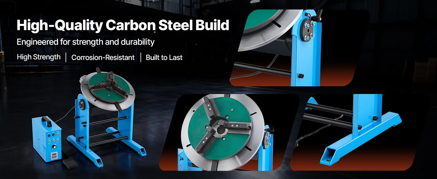 Kernhafte Schweißstützfestigkeit: Der Rahmen aus Kohlenstoffstahl hält Werkstücke unterschiedlichster Art sicher und bietet hervorragende Stabilität sowohl bei horizontalen als auch bei vertikalen Anwendungen. Unser Schweißdrehtisch-Positionierer ist unerlässlich für hochpräzise Schweißnähte